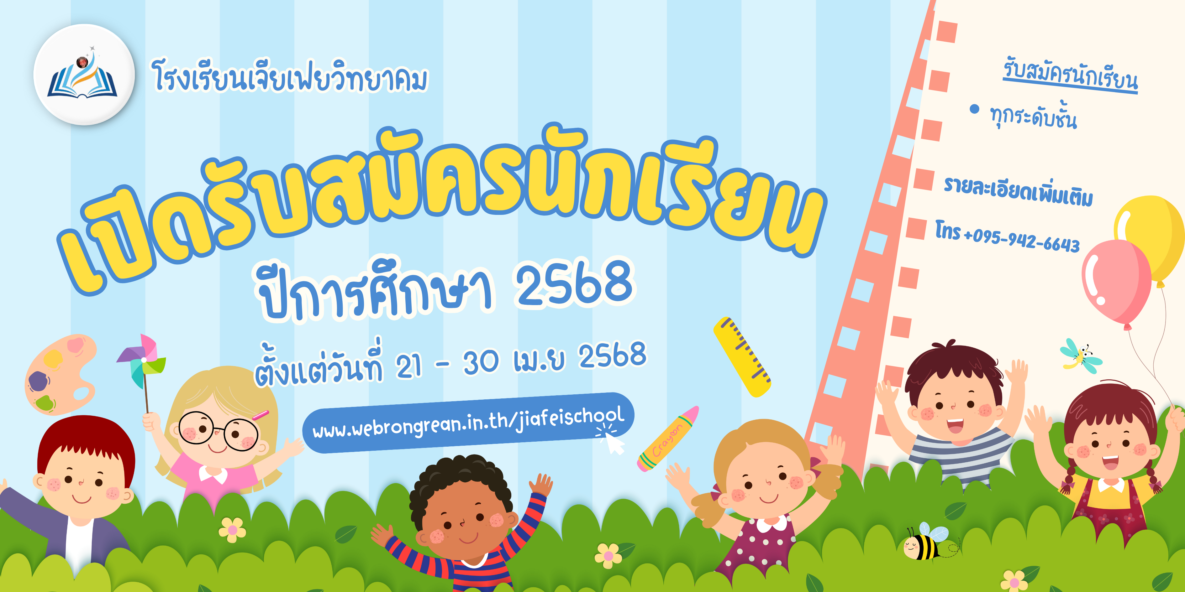 ประกาศรายชื่อผู้ผ่านการสอบคัดเลือกเพื่อเข้าศึกษาต่อในทุกระดับชั้นปีที่ 1รอบนักเรียนเจียเฟย ประจำปีการศึกษา2568 14 มิ.ย. 68